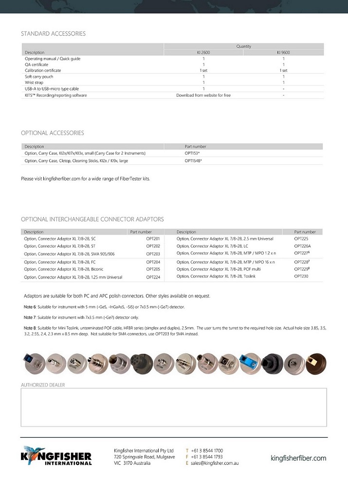KI 9600XL-Ge7和功能豐富的KI 2600XL-Ge7光功率計提供了一系列優點,包括易用性,高精度和提高的生產率,而KI2600XL-Ge7包括出色的報告軟件。
